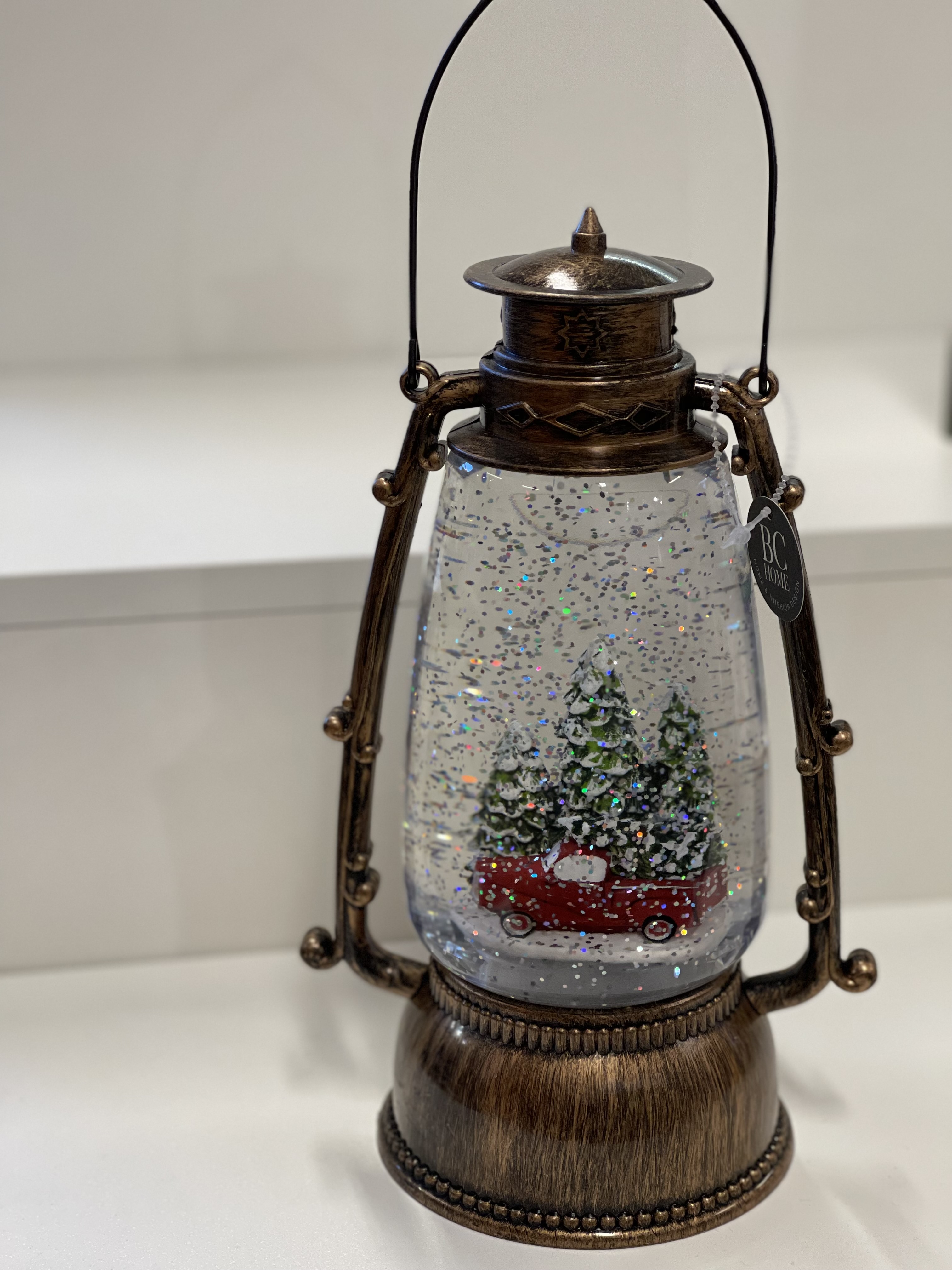 Lykt m/bil virvlende snø antikk 24,5cm