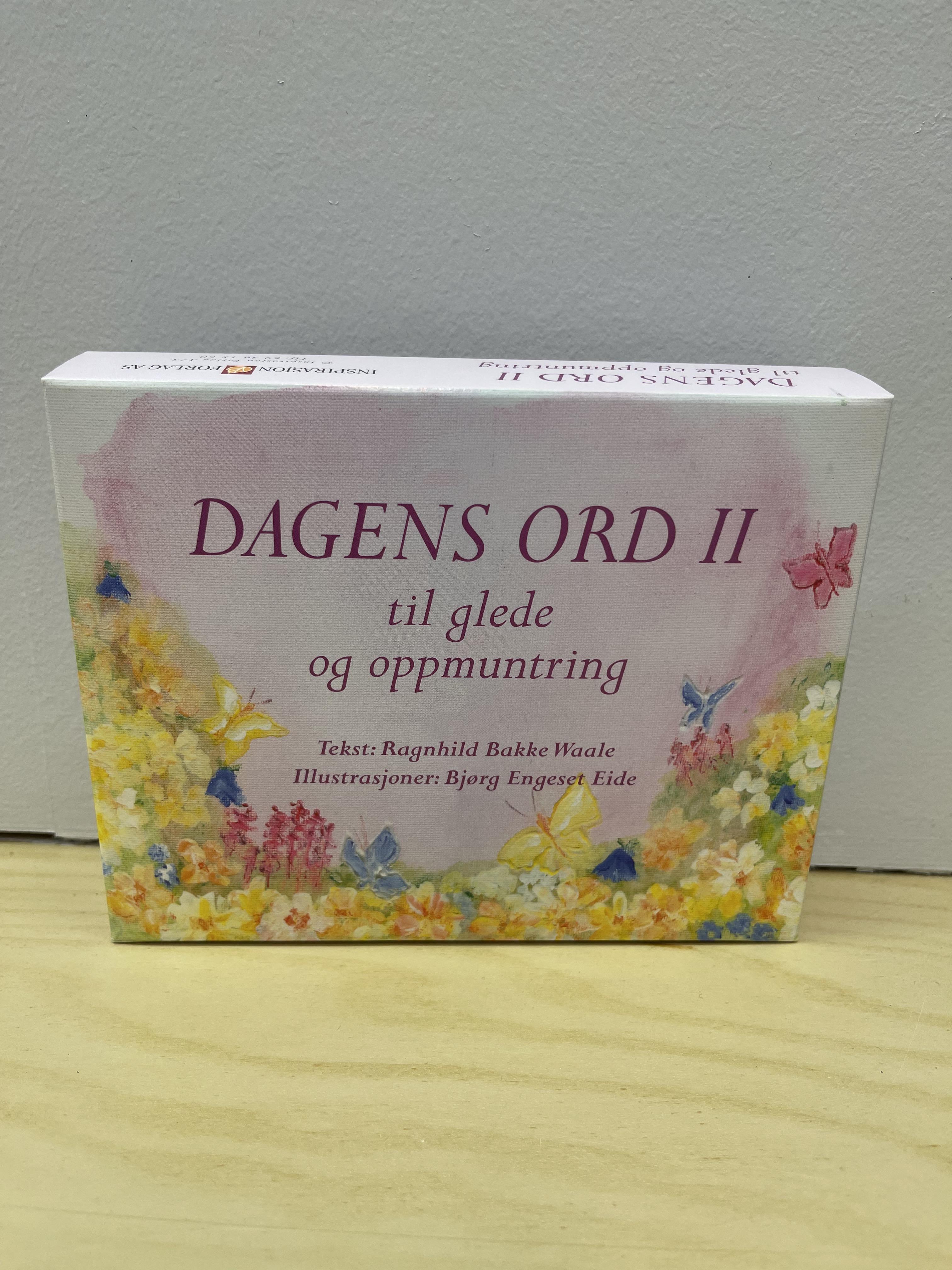 Ord fra forfatteren: Dagens ord til glede og oppmuntring er en bordkalender med 366 små betraktninger, en for hver dag gjennom året. Å sette ord på livets ulike nyanser gjør det lettere å håndtere hver dag. Ord har kraft i seg. Ord kan skape nye retninger. Ord kan løfte dagen. Vi trenger å gi hverandre bærekraft. Hver dag er fullpakket med muligheter. Det er nå du er invitert til å ta dagen i favn som en dyrebar gjest.
