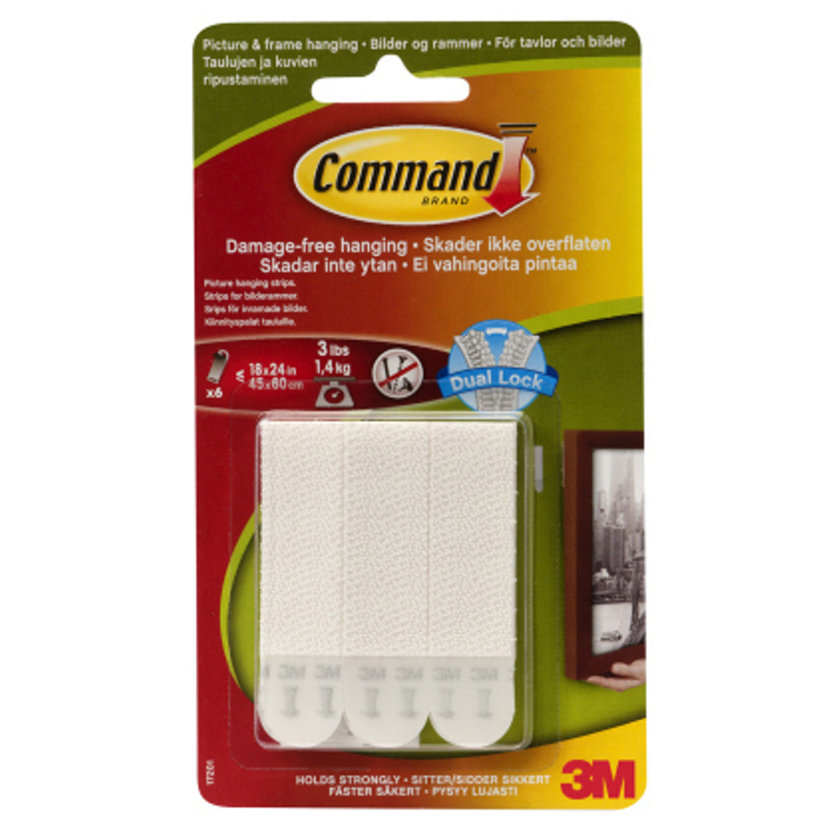 Command Mounting Strips, en innovativ og enkel måte å montere bilder og malerier på veggen på. Uten spiker, skruer og bor – med disse dobbeltsidige limstrimlene sitter alt som det skal, så lenge du ønsker. Når det er tid for å endre eller flytte, er det bare å fjerne limstrimlene uten at de etterlater merker eller limrester. Velegnet til alle glatte overflater, som malte vegger (vent minst en uke etter maling), fliser, metall og tre. Pakken inneholder 4 par limstrimler i mellomstørrelse. Hvert par kan holde opptil 1,35 kilo.