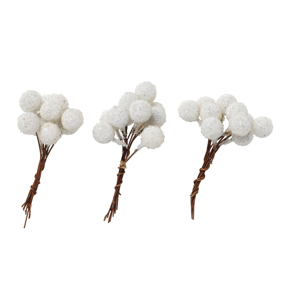 Frostede bær, av syntetisk materiale på ståltråd, ca. Ø 10 mm. Vakker dekor til kranser, julegrupper e.l. Pakke med 100 stk. Hvite