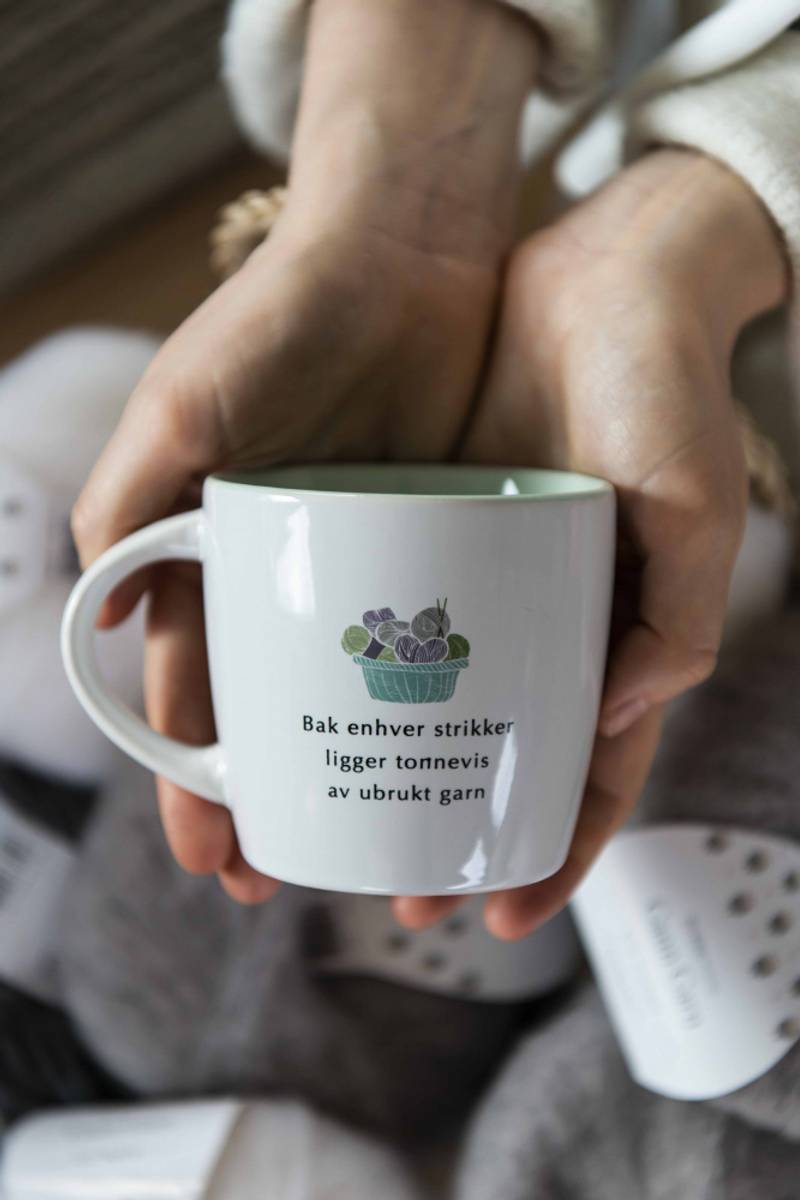 Koppen rommer 2,5 dl drikke og er meget god å drikke av. Du får ulike strikkekopper hos oss med morsomme, sjarmerende og vakre temaer. En perfekt gave til deg selv eller noen du er glad i.