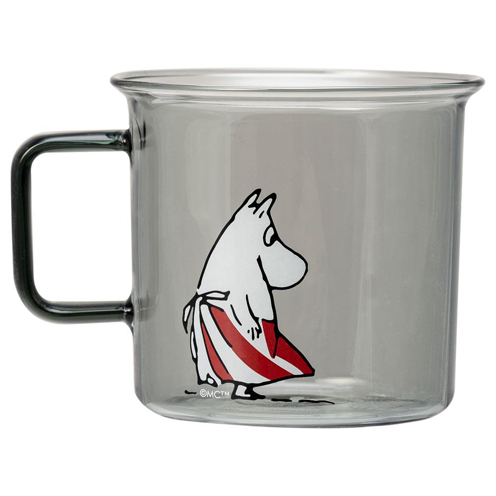 Glasskrus med Mummi Mummimamma motiv som rommer 3,5 dl.