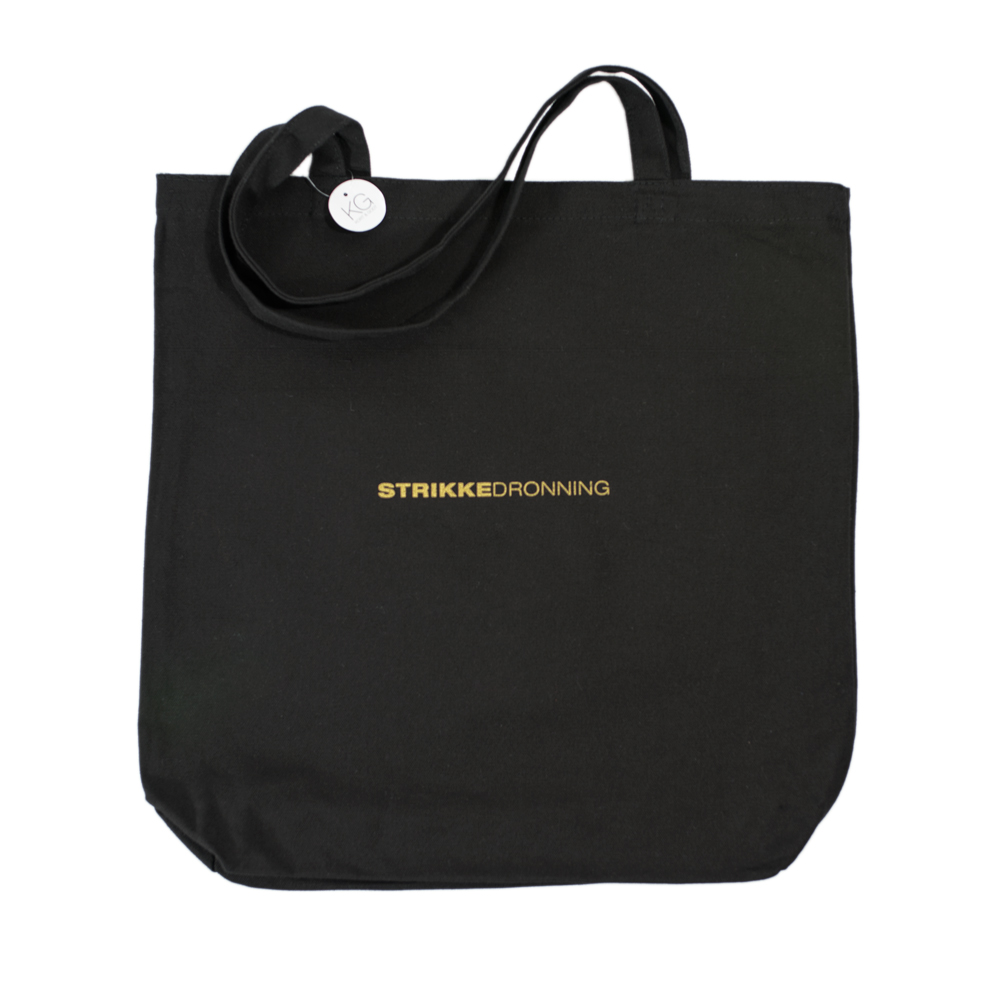 Veske/nett i canvas til å ha garn, pinner, oppskrift eller liknende oppi. Strikkedronning.