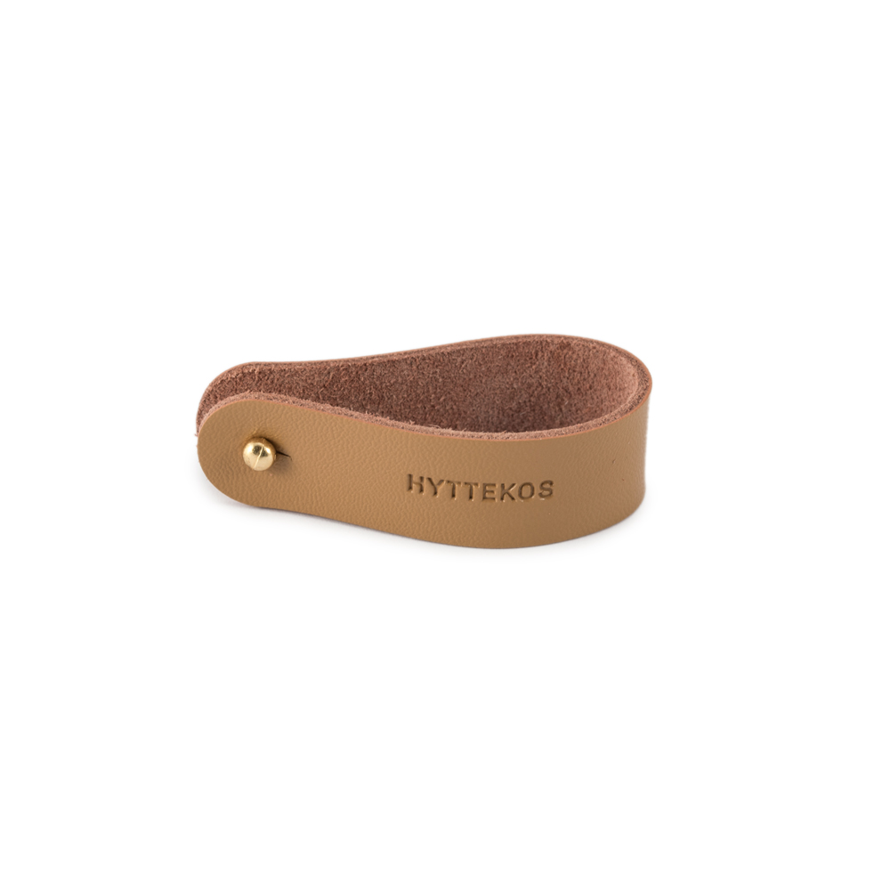 Skinn i lys brun farge med diskre knapp i gullfarge