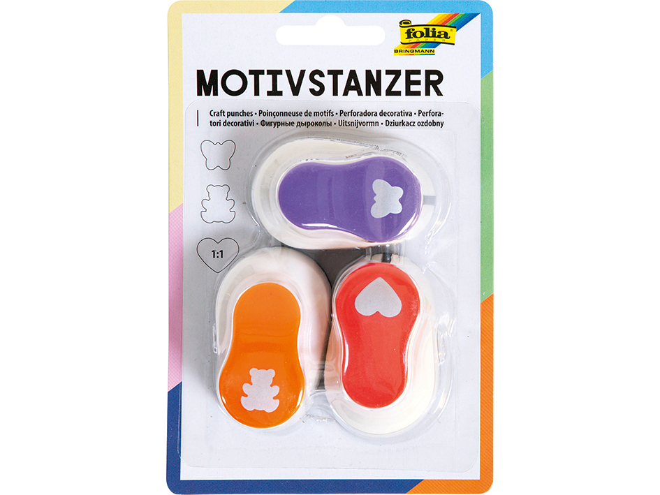 Folia Motivstanser 3stk – Sommerfugl / bamse / hjerte