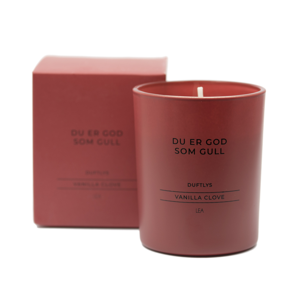 Duftlys i farget glass. Kommer i en dekorativ forpakning.