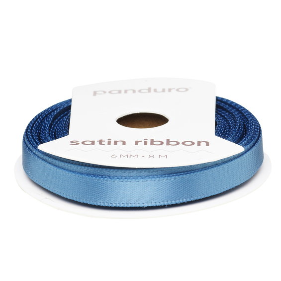 Denimblått satengbånd – 6 mm bredt og 8 meter langt
