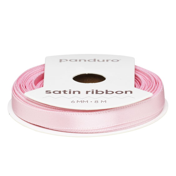 Panduro Satin Ribbon er en omfattende serie flotte dobbeltsidige satengbånd som finnes i mange farger og forskjellige bredder. Båndene er myke og glansfulle – en perfekt detalj for gaveinnpakning, kranser, bordpynt, sløyfer, blomsterbuketter, hobbyarbeid og DIY generelt. Virkelig det lille ekstra som gir det meste et løft. Rullen inneholder 8 meter, og båndet er 12 mm bredt. Fremstilt i 100 % polyester. Tåler å vaskes på 40 °C. Lyserosa satengbånd – 6 mm bredt og 8 meter langt