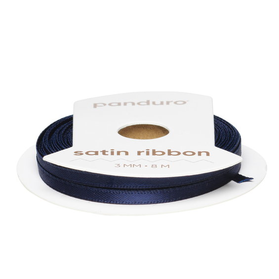 Marineblått satengbånd – 3 mm bredt og 8 meter langt