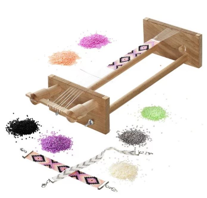 Kit med perlevevramme, perler m.m. til veving av perlearmbånd