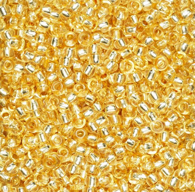 Rocaillesperler (9/0), av glass (preciosa), kalles også for seed beads. Dekorative perler som fås i mange lekre farger. Vakre å bruke både som detaljer eller som hovedmateriale i halskjeder, armbånd, mobilpynt m.m. Perfekte å bruke i perlevev og dekorative å brodere med på f.eks. puter og vesker. Perlene er produsert i Europa i henhold til tradisjonell teknikk som garanterer høy kvalitet, størrelsestoleranse Ø 2,4-2,8 mm – men i enkelte tilfeller kan det forekomme perler ned til Ø 2,2 mm. Hull ca. 0,7 mm. Innhold 30 g, ca. 1350 stk. - Lysegul transparent