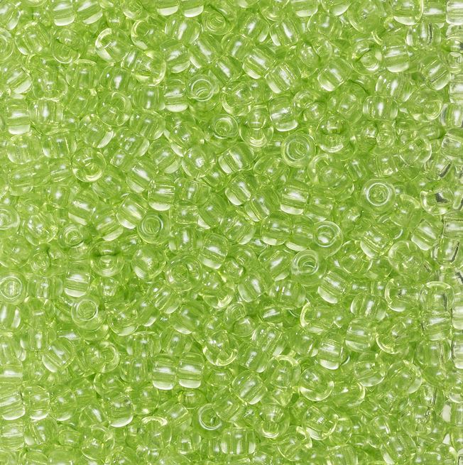 Rocaillesperler (9/0), av glass (preciosa), kalles også for seed beads. Dekorative perler som fås i mange lekre farger. Vakre å bruke både som detaljer eller som hovedmateriale i halskjeder, armbånd, mobilpynt m.m. Perfekte å bruke i perlevev og dekorative å brodere med på f.eks. puter og vesker. Perlene er produsert i Europa i henhold til tradisjonell teknikk som garanterer høy kvalitet, størrelsestoleranse Ø 2,4-2,8 mm – men i enkelte tilfeller kan det forekomme perler ned til Ø 2,2 mm. Hull ca. 0,7 mm. Innhold 30 g, ca. 1350 stk. - Lys grønn transparent