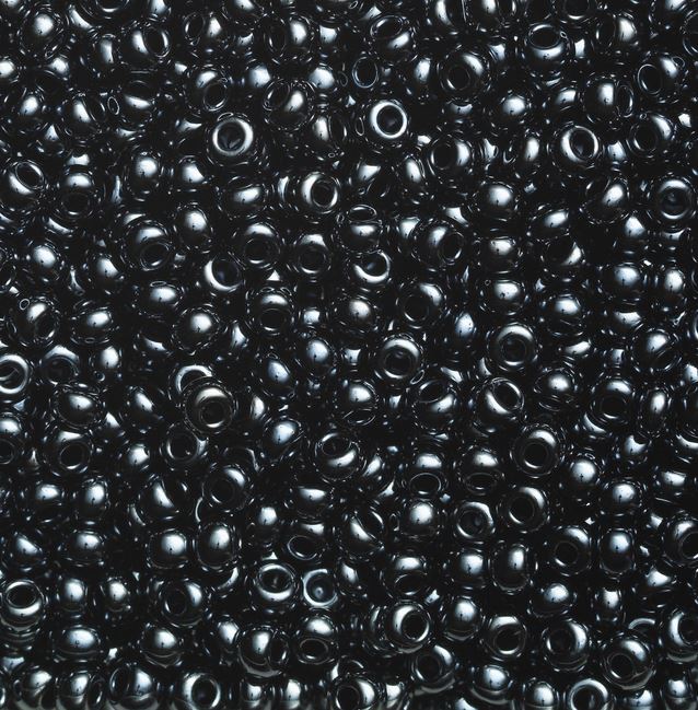 Rocaillesperler (6/0), av glass (preciosa), kalles også for seed beads. Dekorative perler som fås i mange lekre farger. Vakre å bruke både som detaljer eller som hovedmateriale i halskjeder, armbånd, mobilpynt m.m. Også perfekte å bruke i perlevev og dekorative å brodere med på f.eks. puter og vesker. Perlene er produsert i Europa i henhold til tradisjonell teknikk som garanterer høy kvalitet, størrelse Ø 3,7–4,3 mm. Hull ca. 1 mm. Innhold 30 g, ca. 390 stk. - Mørkgrå iriserende