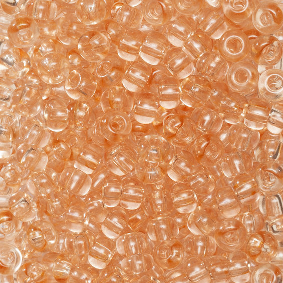 Rocaillesperler (6/0), av glass (preciosa), kalles også for seed beads. Dekorative perler som fås i mange lekre farger. Vakre å bruke både som detaljer eller som hovedmateriale i halskjeder, armbånd, mobilpynt m.m. Også perfekte å bruke i perlevev og dekorative å brodere med på f.eks. puter og vesker. Perlene er produsert i Europa i henhold til tradisjonell teknikk som garanterer høy kvalitet, størrelse Ø 3,7–4,3 mm. Hull ca. 1 mm. Innhold 30 g, ca. 390 stk. - Lys fersken transparent