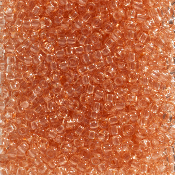 Rocaillesperler (9/0), av glass (preciosa), kalles også for seed beads. Dekorative perler som fås i mange lekre farger. Vakre å bruke både som detaljer eller som hovedmateriale i halskjeder, armbånd, mobilpynt m.m. Perfekte å bruke i perlevev og dekorative å brodere med på f.eks. puter og vesker. Perlene er produsert i Europa i henhold til tradisjonell teknikk som garanterer høy kvalitet, størrelsestoleranse Ø 2,4-2,8 mm – men i enkelte tilfeller kan det forekomme perler ned til Ø 2,2 mm. Hull ca. 0,7 mm. Innhold 30 g, ca. 1350 stk. - Lys fersken transparent