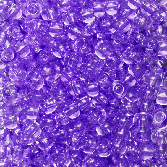 Rocaillesperler (6/0), av glass (preciosa), kalles også for seed beads. Dekorative perler som fås i mange lekre farger. Vakre å bruke både som detaljer eller som hovedmateriale i halskjeder, armbånd, mobilpynt m.m. Også perfekte å bruke i perlevev og dekorative å brodere med på f.eks. puter og vesker. Perlene er produsert i Europa i henhold til tradisjonell teknikk som garanterer høy kvalitet, størrelse Ø 3,7–4,3 mm. Hull ca. 1 mm. Innhold 30 g, ca. 390 stk. - Lys lilla transparent