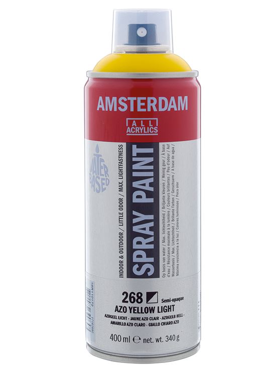 Amsterdam akrylspray gir din kunstneriske frihet nye muligheter. Mal og spray om hverandre og lek med fargene! Fargepaletten på 46 farger inneholder både transparente og dekkende farger, så man kan bruke samme maleteknikker som med tradisjonell kunstnermaling. Fargene har meget god lysekthet og kan derfor brukes til varige arbeider på de fleste underlag. Med denne profesjonelle spraymalingen kan du jobbe raskt og legge til nye teknikker i kunstverkene dine. Amsterdam spray er vannbasert og laget av en ny, revolusjonerende vannformel som gir mindre lukt.
