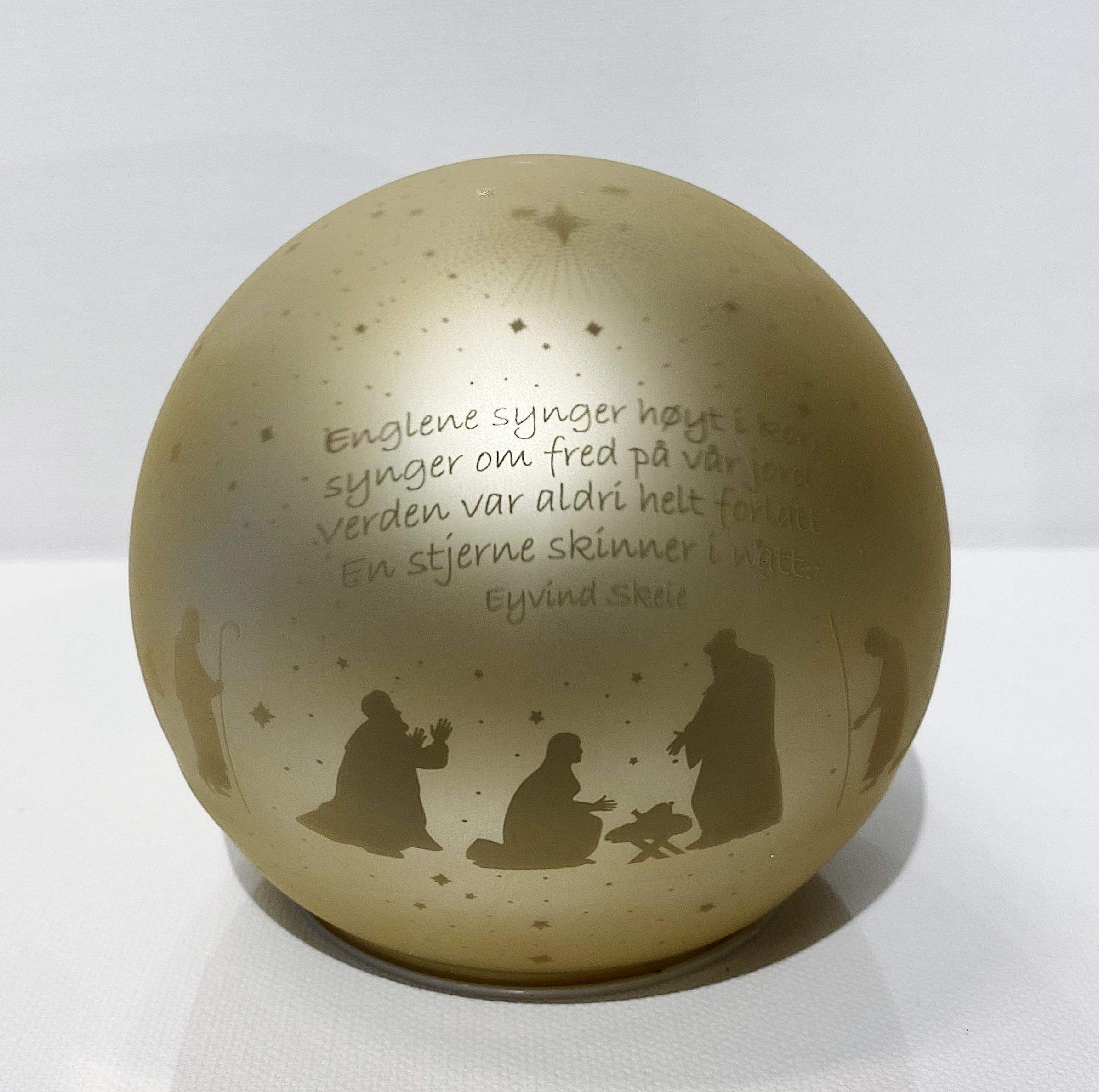 Stemningsfullt lysglass med dekor og 10 mikroledlys.