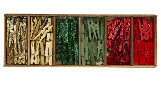 96 små klesklyper (30 mm) i en miks med 6 fine julefarger