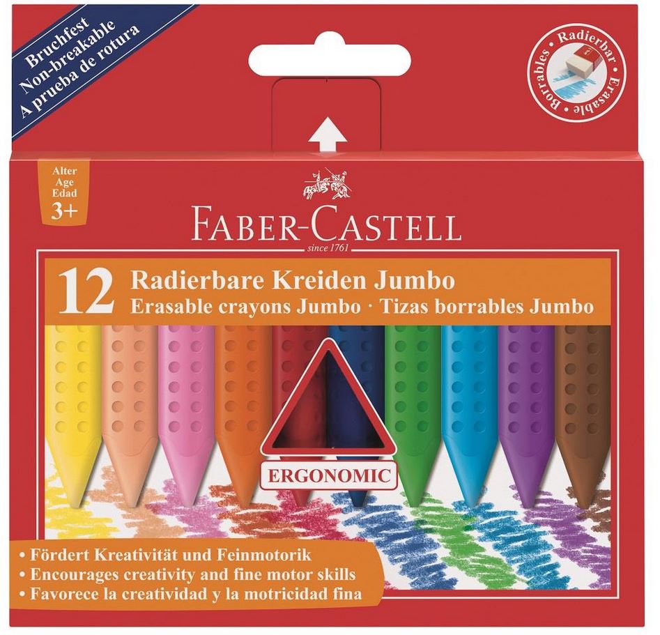 Jumbo Grip voks fargestift. Ergonomiske trekantet form. Til de små spirende kunstnere. Kan viskes ut. Fremmer tre-fingregrepet hos barna.
