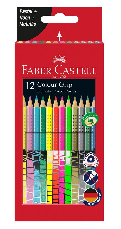 Fargeblyanter i trekantet, ergonomisk form med patentert Soft-Grip-sone. Fargeminer med spesielle lysglanspigmenter. Komplett vannløselig. Triangulær form fremmer trefingergrep. Kan brukes både til høyre og venstre hånd. Kan vaskes bort av de fleste tekstiler.