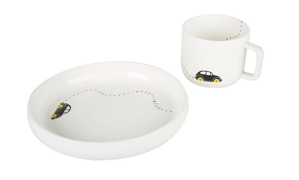 Flott barneservise med motiv av bil som inneholder både en tallerken og krus i keramikk. Kruset rommer 2,5dl og tallerkenen måler 17cm. Tåler både oppvaskmaskin og mikrobølgeovn.