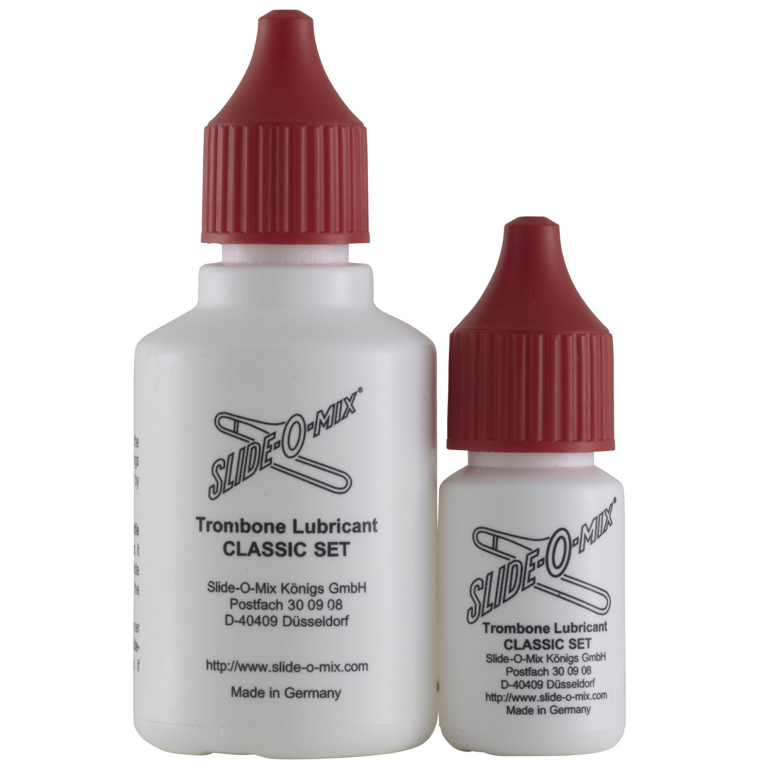 Slide-O-Mix Trombone Lubricant gives your slide a fantastic glide. It is a 2-component liquid lubricant, which adheres very well to the slide surface. There is no sticking or stopping of the slide. Slide-O-Mix is very economical in use. Very helpful, especially for beginners, is the fact, that no faults in dosing are possible. To meet all different dosing habits, you can get both components of the set also single.