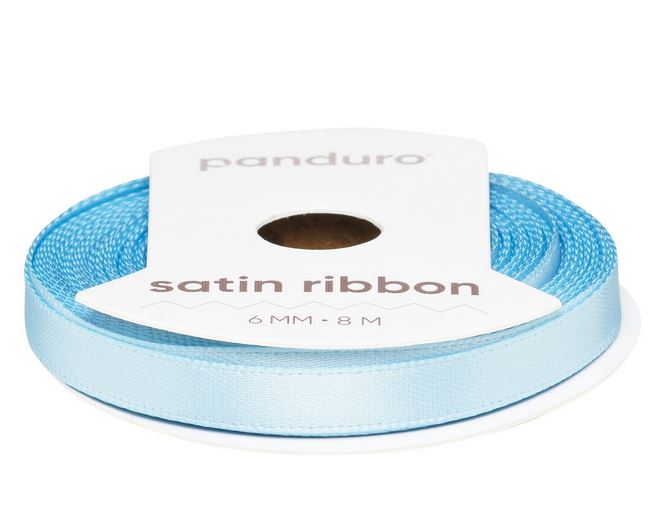 Lyseblått satengbånd – 6 mm bredt og 8 meter langt