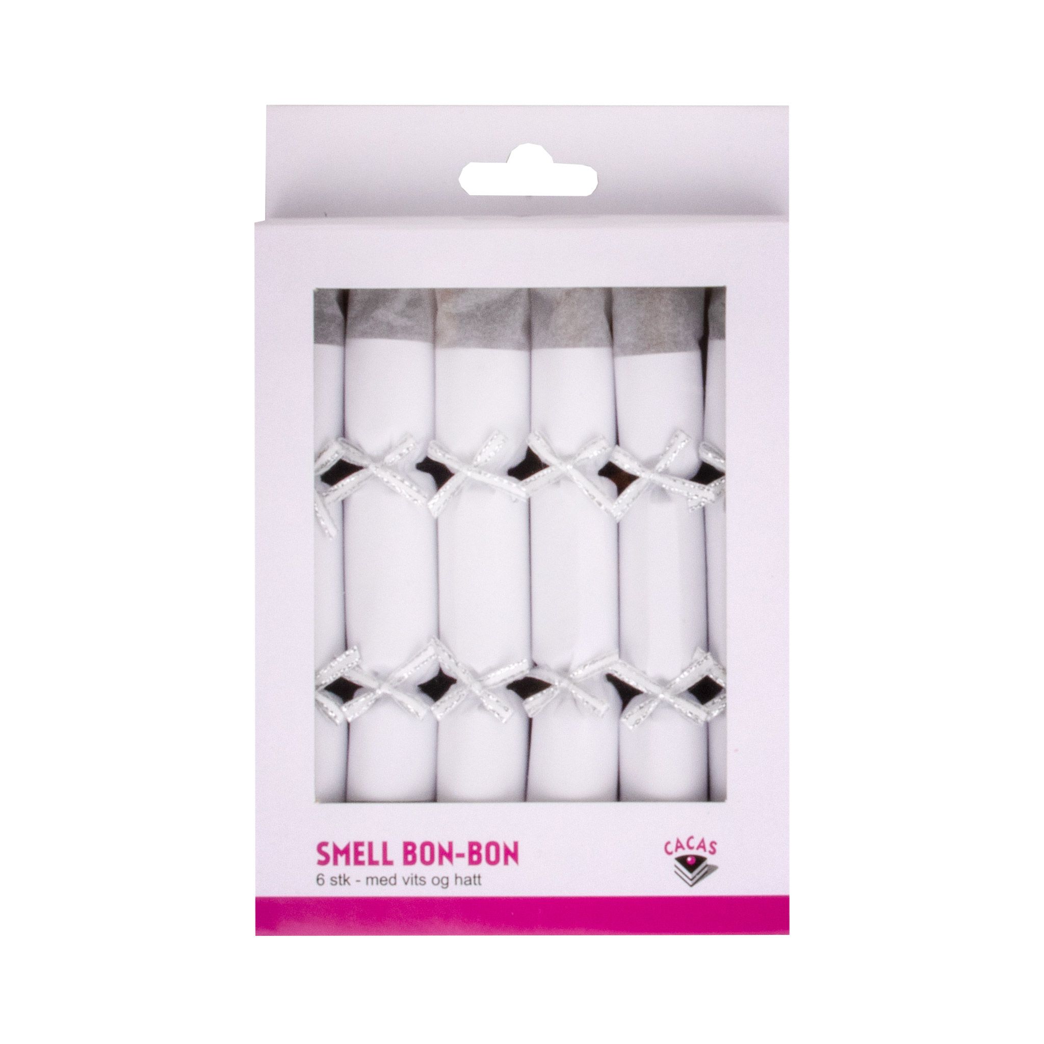 Inneholder 6 stk smell bon-bon med vits og hatt.