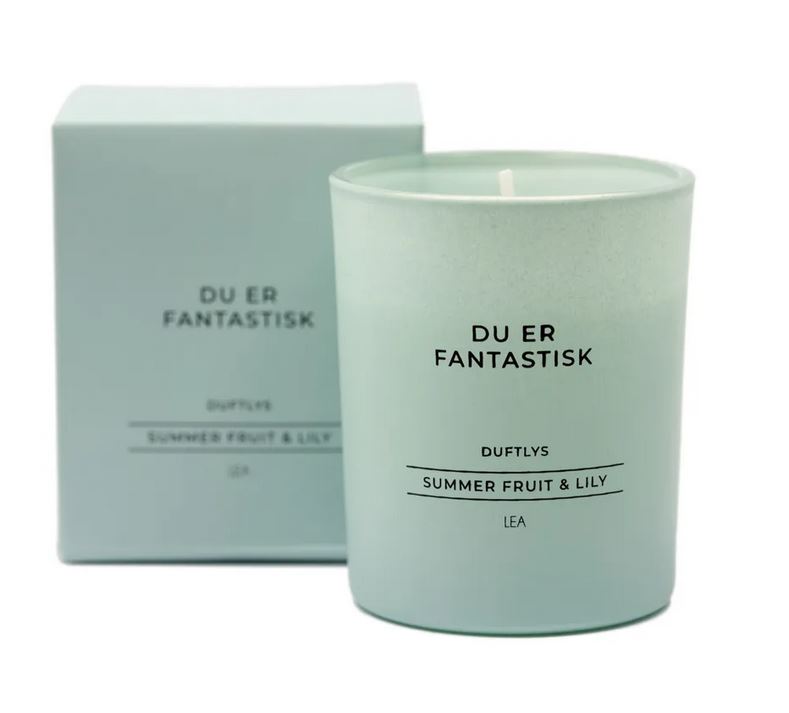 Duftlys i farget glass. Kommer i en dekorativ forpakning.