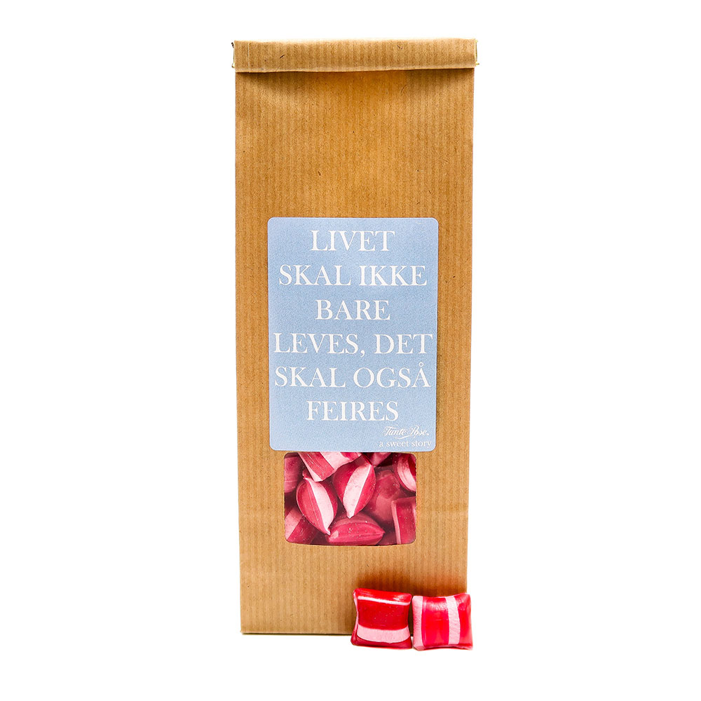 "livet skal ikke bare leves, det skal også feires" Markjordbærdrops 100g