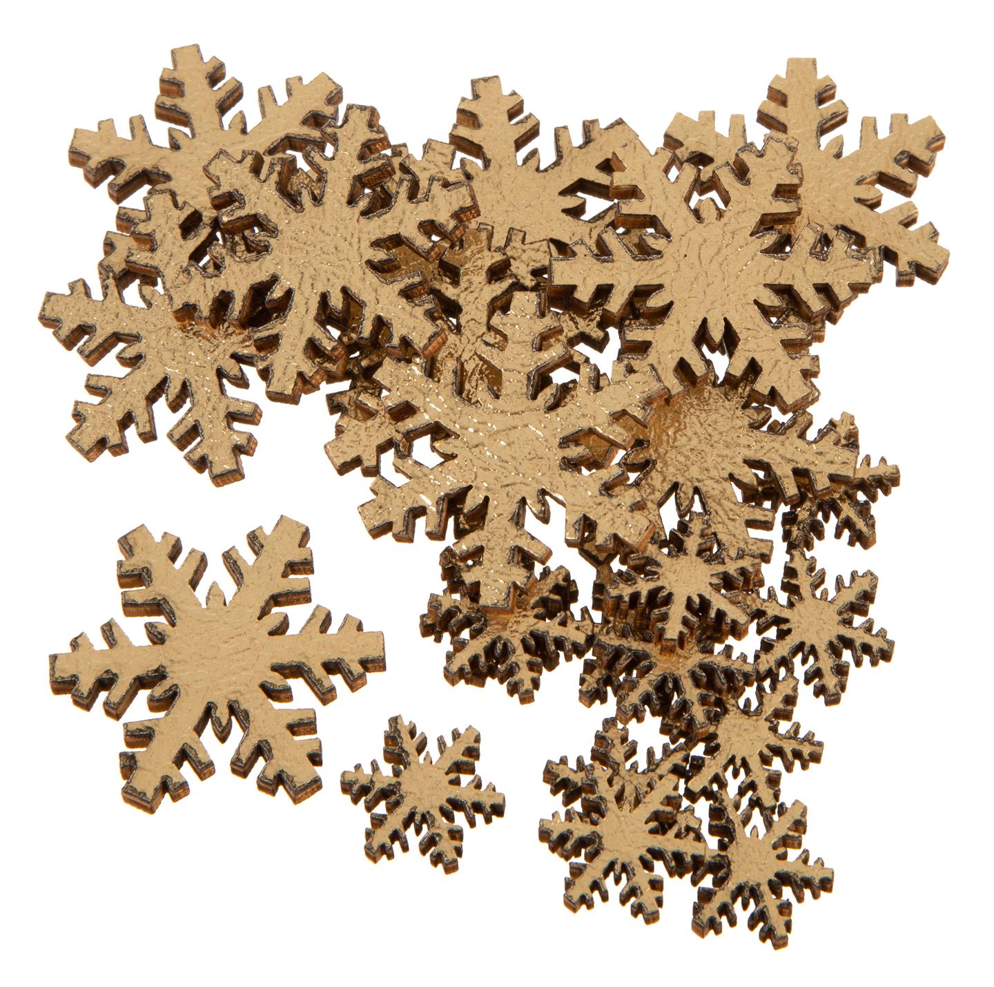 Snøfnugg tre gull glitter assortert 24st