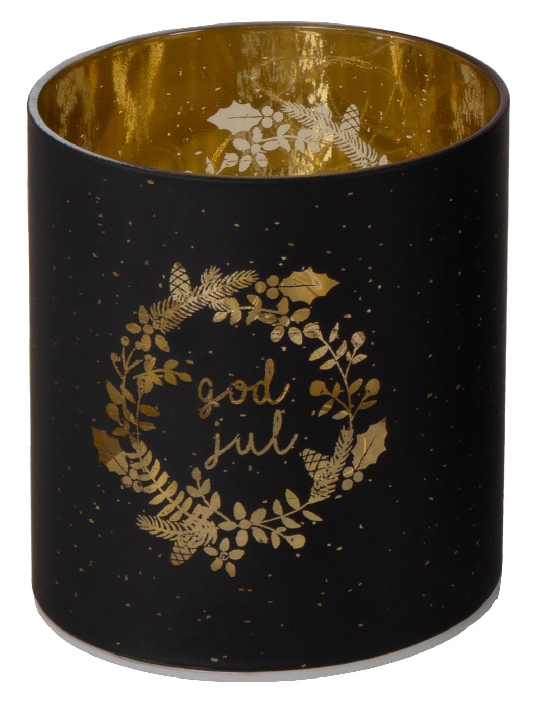 Lyslykt krans God Jul m. sort LED