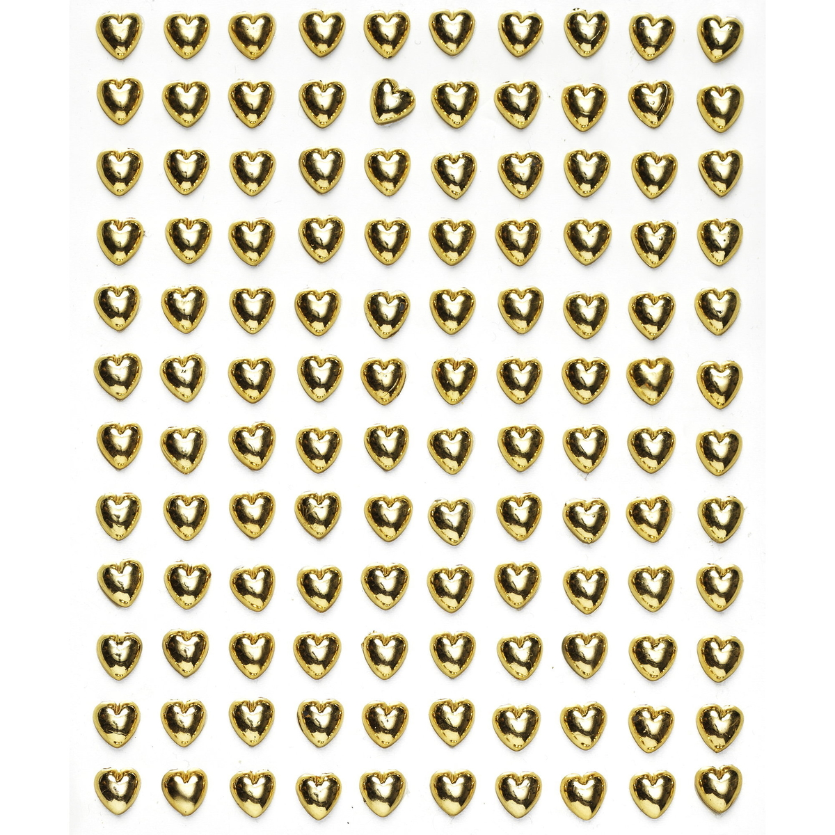 Pearl stickers / perleklistremerker i form av gullglinsende hjerter som er ca. 7 mm i diameter – lag noe skikkelig fint til valentinsdagen! Klistremerkene er opake og selvklebende. Pakken inneholder 240 perleklistremerker. Pakken inneholder 2 ark på 11,5×13,7 cm, og perlene er fremstilt i akryl. Ingen presang eller julegave vil ta seg flottere ut enn den som er pyntet med en fin snor og disse klistremerkene. Perle- og strassdekor er også fint til dekorasjon, kortproduksjon, scrapbooking, DIY og hobbysysler generelt.