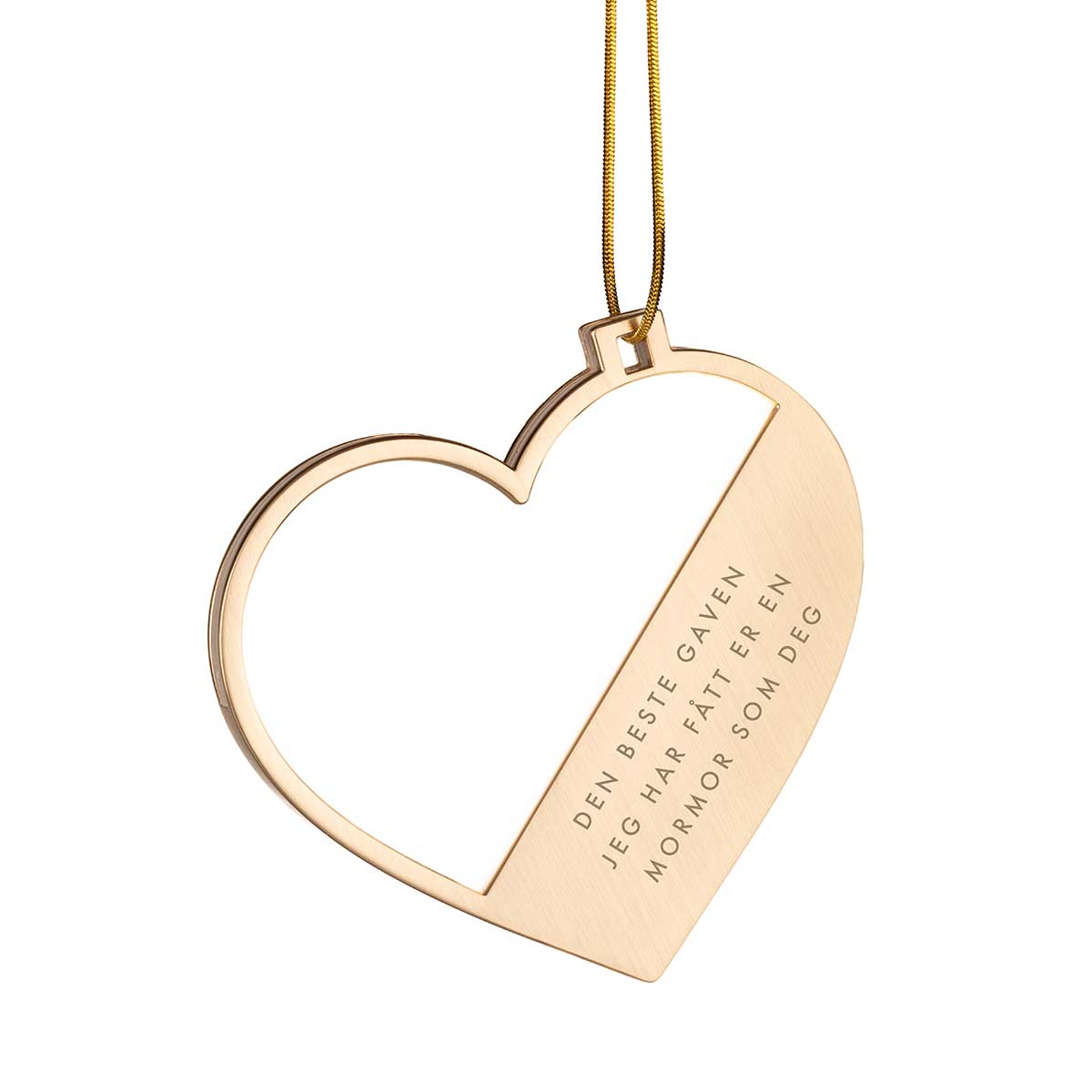 En personlig julepynt m/fotoramme med teksten «Den beste gaven jeg har fått er en mormor som deg», formet som et hjerte.
