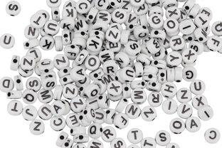 Plastperler 50g – Bokstavperler runde hvit/sort 7mm