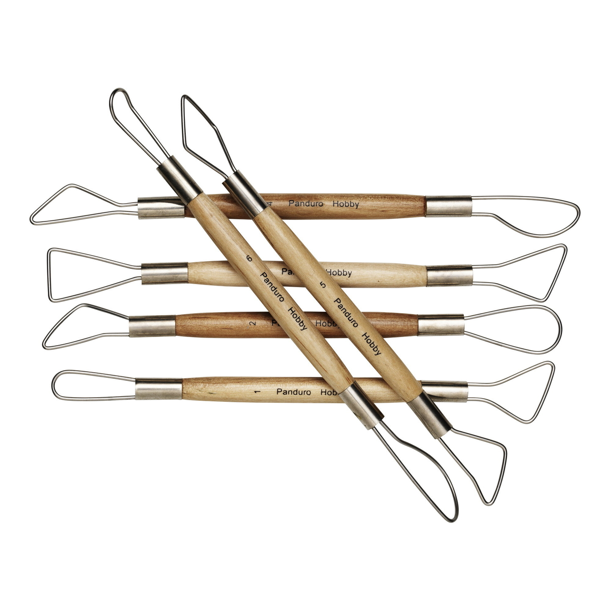 Slynger miks 6-pk, verktøy til leire. Doble slynger med treskaft, L. ca. 20 cm. Modeller som på bildet.