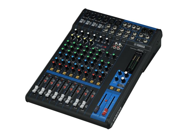 12-Channel Mixing Console: Max. 6 Mic / 12 Line Inputs (4 mono + 4 stereo) / 2 GROUP Buses + 1 Stereo Bus / 2 AUX (incl. FX)