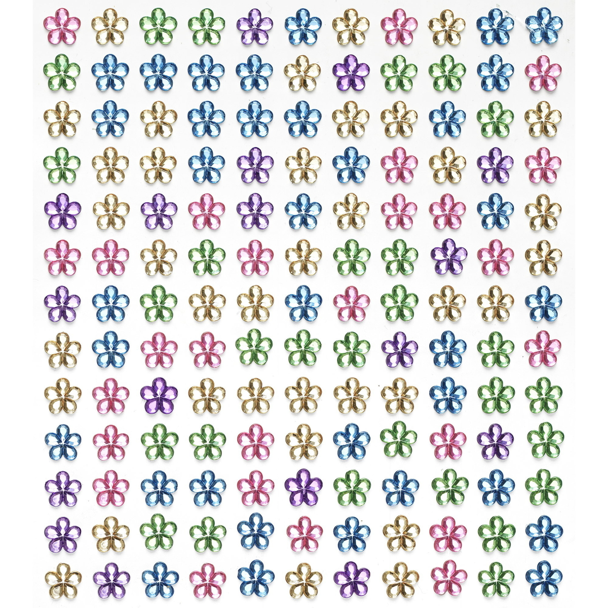 Blomsterformede rhinestone stickers. Hver blomst har en diameter på 8 mm, til sammen 288 transparente pastellfargede klistremerker som er selvklebende. Pakken inneholder 2 ark på 12×13,5 cm, og perlene er fremstilt i akryl. Kalles også strassklistremerker / perleklistremerker / strassdekor. Ingen presang eller julegave vil ta seg flottere ut enn den som er pyntet med en fin snor og dette blinget. Strassdekor er også fint til dekorasjon, kortproduksjon, scrapbooking, DIY og hobbysysler generelt.