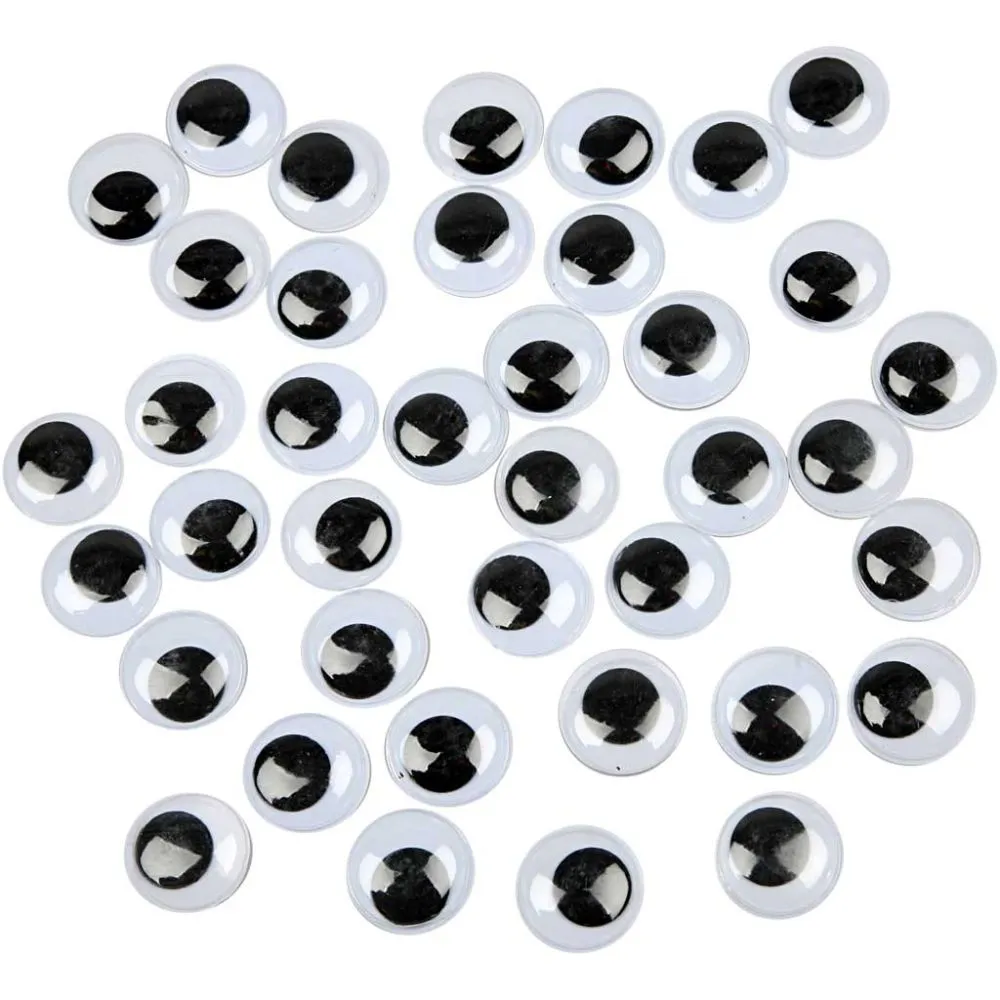 Vinglete øyne med bevegelige pupiller som du kan bruke på alt som trenger et morsomt utseende. Øynene har en flat bakside som ikke kleber.