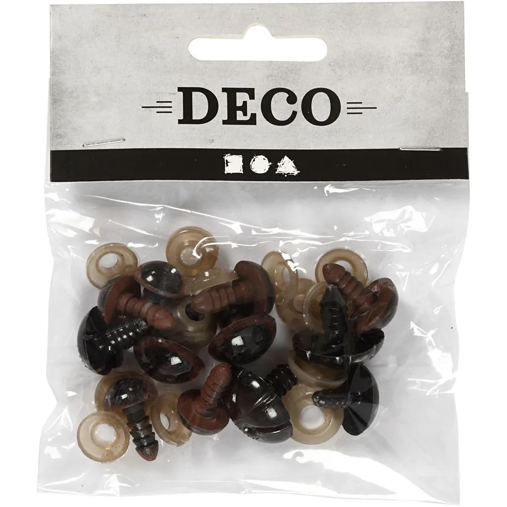 Sortiment med bamseøyne og -snuter av plast med låseskive