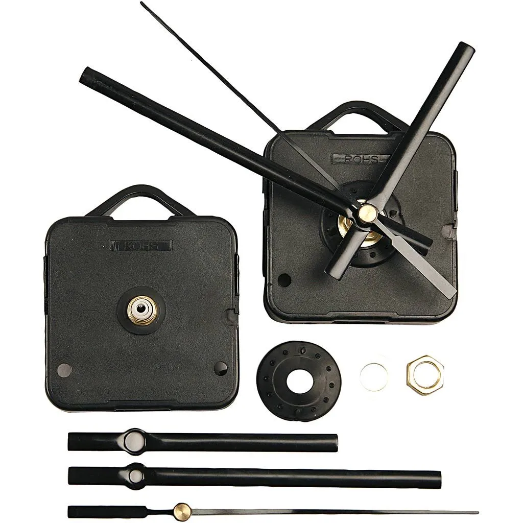 Klokkeverk med sorte visere som du kan bruke til å lage din egen lille klokke (Batteri ikke inkludert - varenr. 14000).