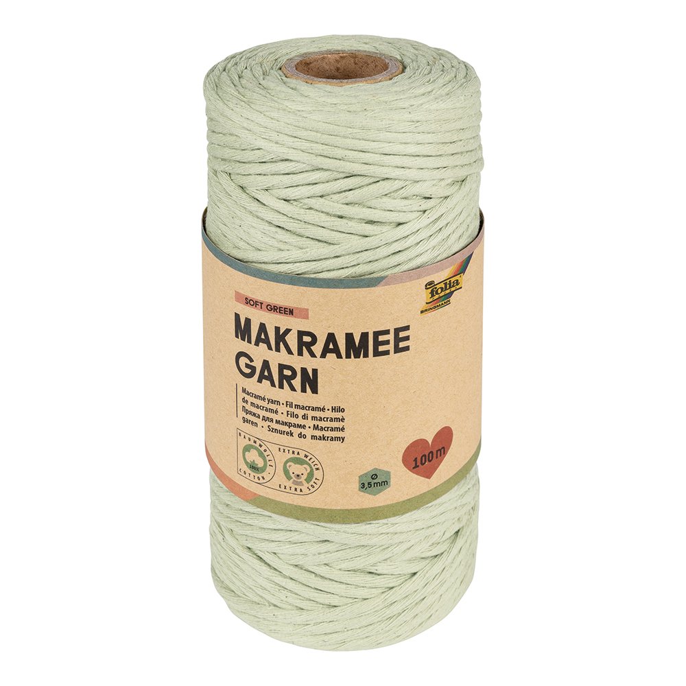 Folia Makramégarn 100% bomull – 3,5mm 100m – SOFT GREEN