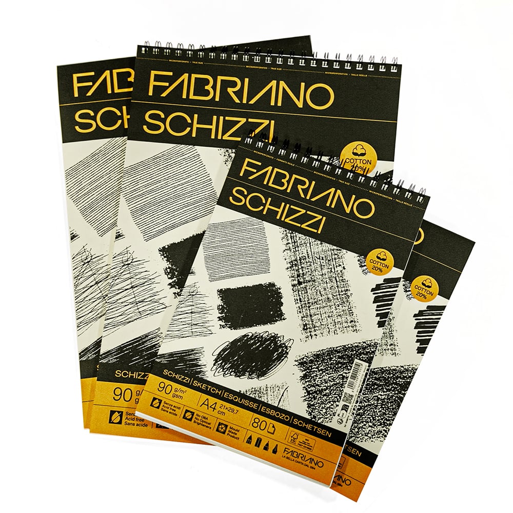 Fabriano Schizzi kommer i limte og spiralinnbundne blokker med 90