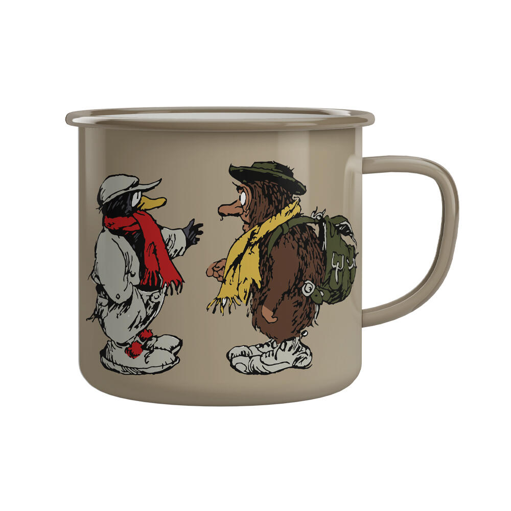 Nyt drikken med Ludvig og Solan! Emaljekoppen har en myk kantovergang for å skape en behagelig overflate å drikke fra. Emaljekoppen er godkjent for bruk på komfyr, induksjonsplate, ovnen og i oppvaskmaskinen. Må ikke brukes i mikrobølgeovnen. Koppen er håndlaget og kan derfor variere noe i utseende.